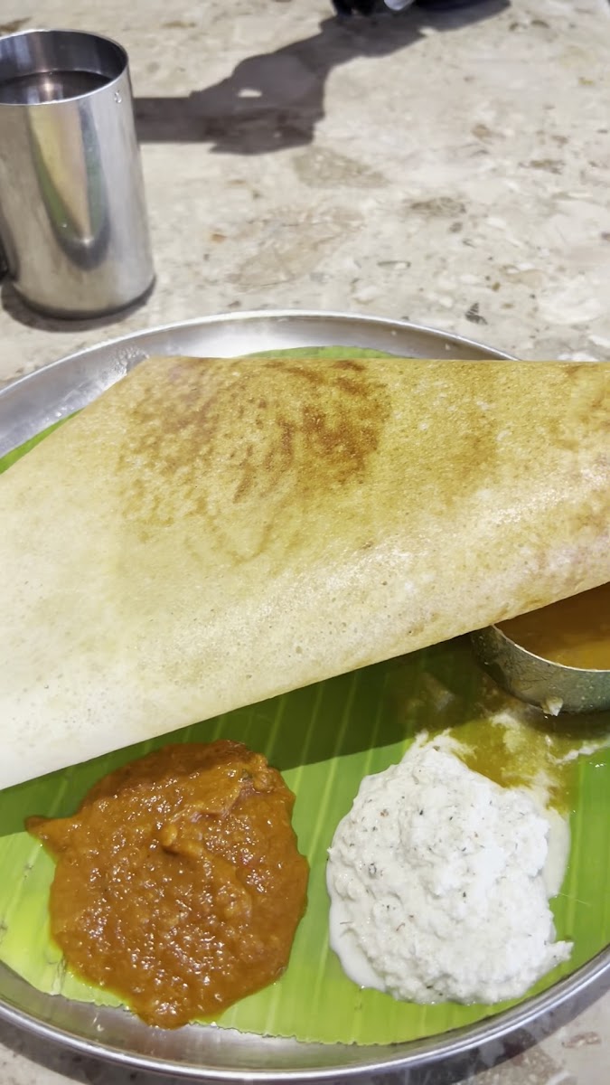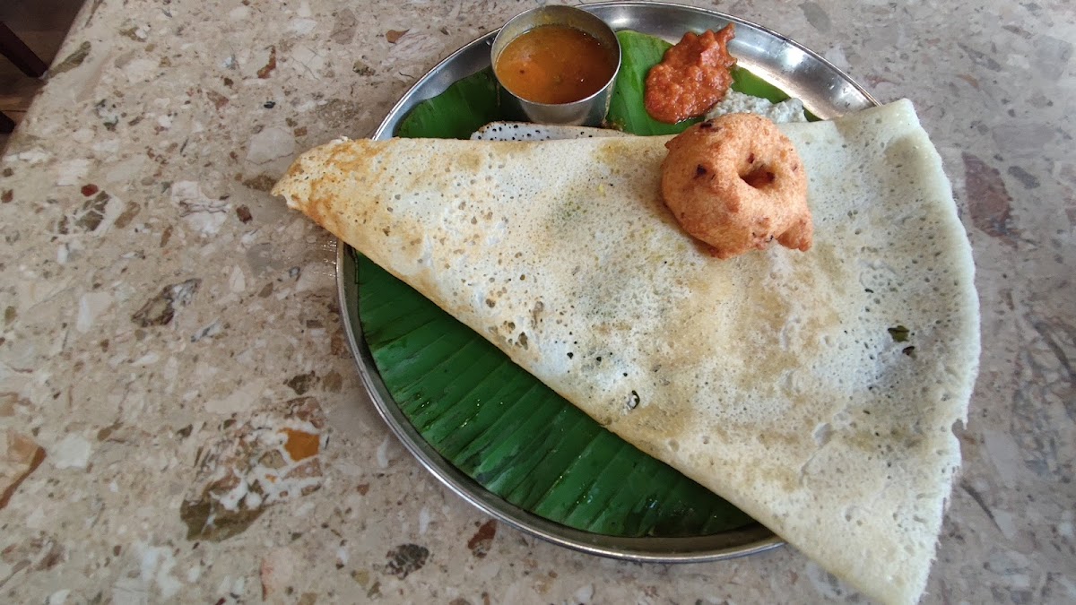 I had a wonderful morning at " Aryaas Vegetarian Restaurant". The breakfast spread was impressive, especially the ghee roast and masala dosa. The variety of chutneys and side dishes added a delightful touch that placed on the table for convenience. The interior was clean and inviting. While the parking area for two-wheelers could be cleaner, it's a minor drawback. I highly recommend this place for a satisfying breakfast.