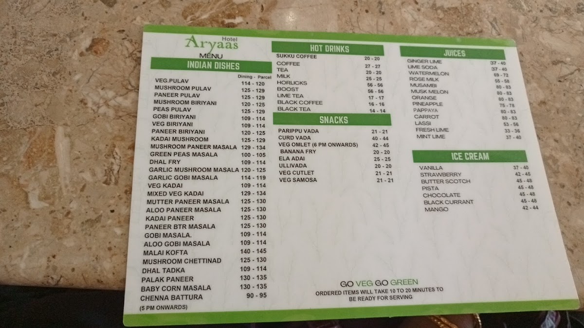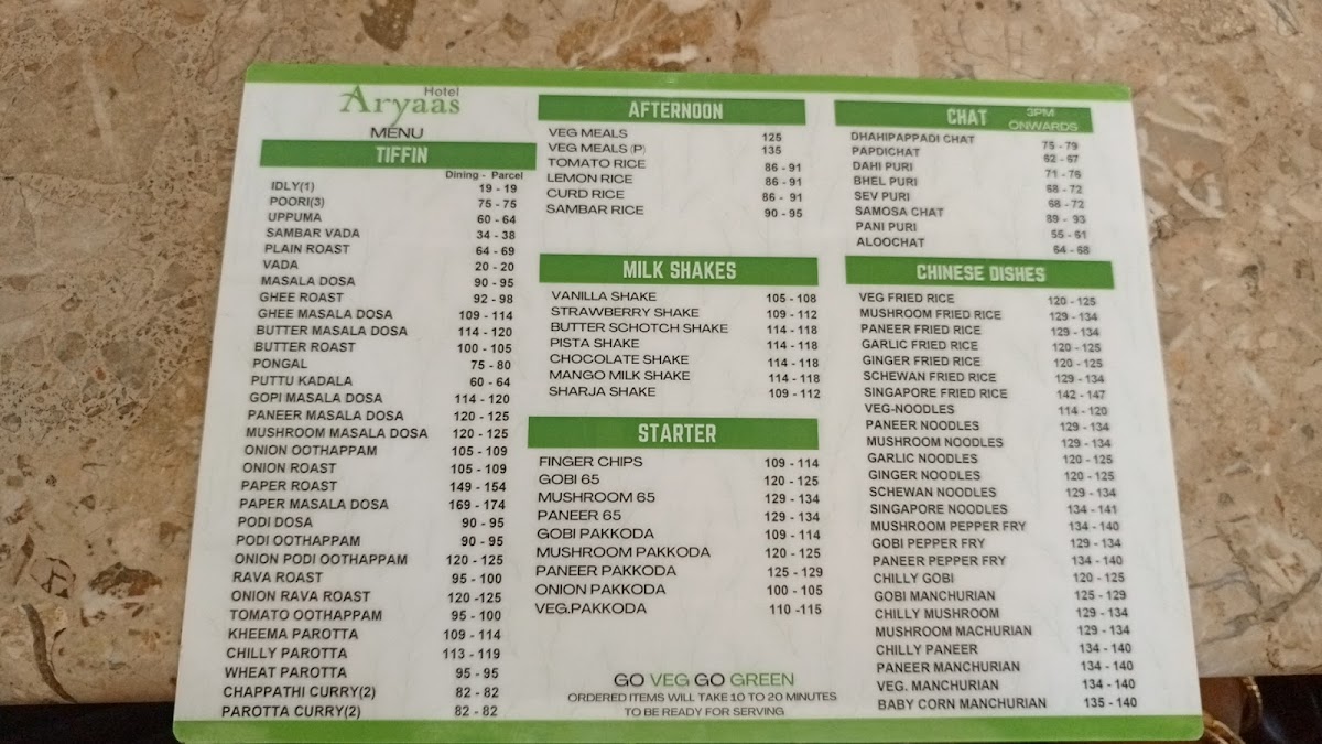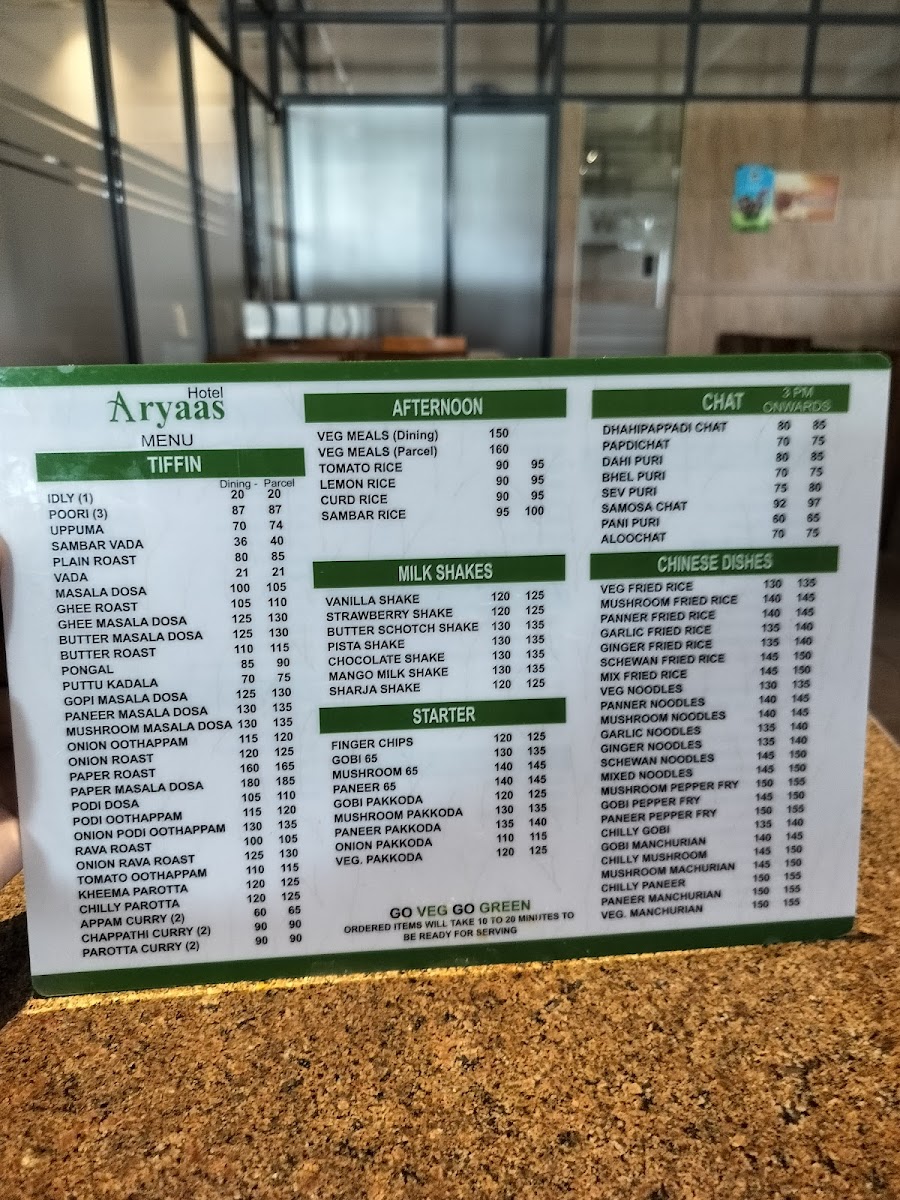 In short, Aryaas Vegetarian offers an inviting ambiance, quick service, and a menu that’s sure to impress any vegetarian food lover.